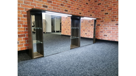 Zánovní (oděrky). Materiál lamino. S LED osvětlením. 2 dvířka. Šířka 170cm, hloubka max.: 27cm, výška 66cm. 1/45
