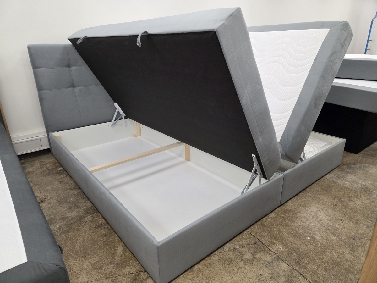 Nová boxspring postel BERO KING šedá 200x200