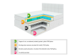 Potah semiš, 2x úložný prostor, včetně topperu. Lůžko 200x200 cm, výška lůžka 70 cm, výška čelo: 205x110 cm.