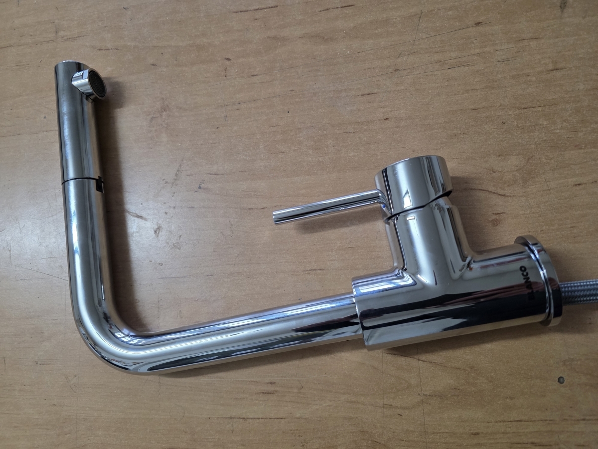 Stojánková Tlaková dřezová baterie, provedení Chrom, výška 296 mm, vytahovací koncovka s perlátorem, pro otvor 35 mm, otočná o 360 °. 200P