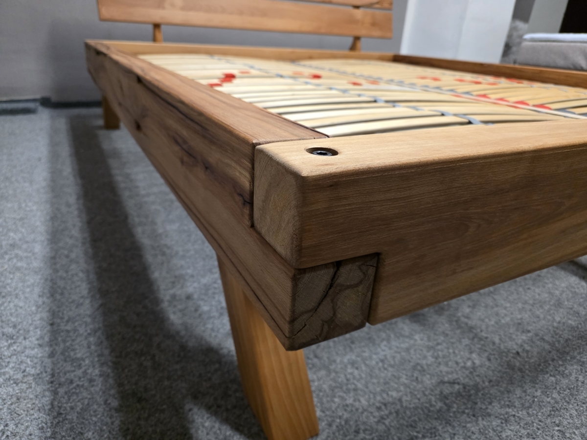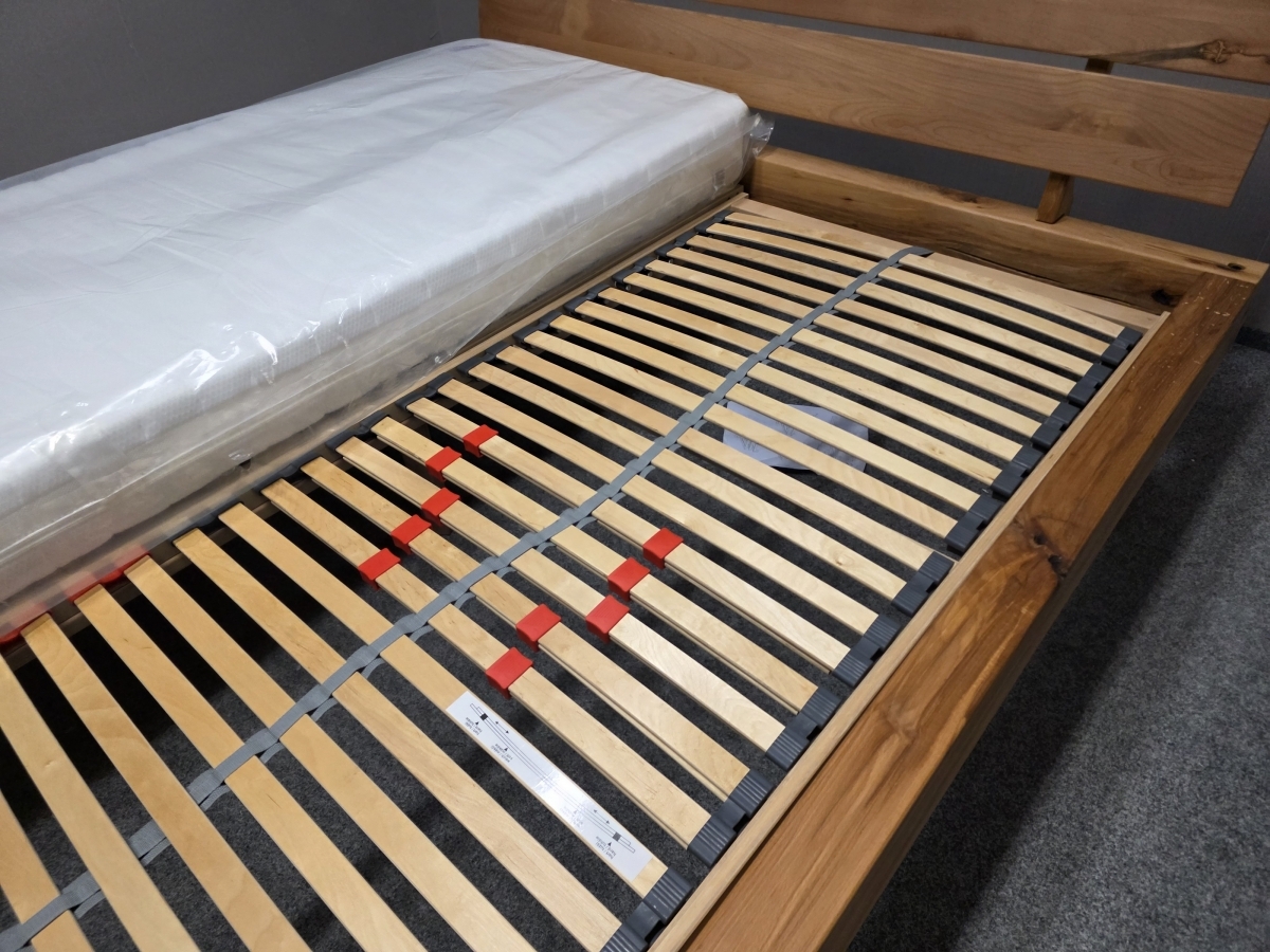 Materiál masiv dub olejovaný. 2x lamelový rošt s možností nastavení tuhosti. 2x matrace PR pěna, 7zón, tloušťka 17 cm, středně tvrdá. Cena dohromady. Lůžko: 180x200 cm, výška boků: 40 cm, šířka 197 cm, délka 220 cm, výška čela: 82 cm, výška lůžka: 51 cm, síla boků: 8 cm.