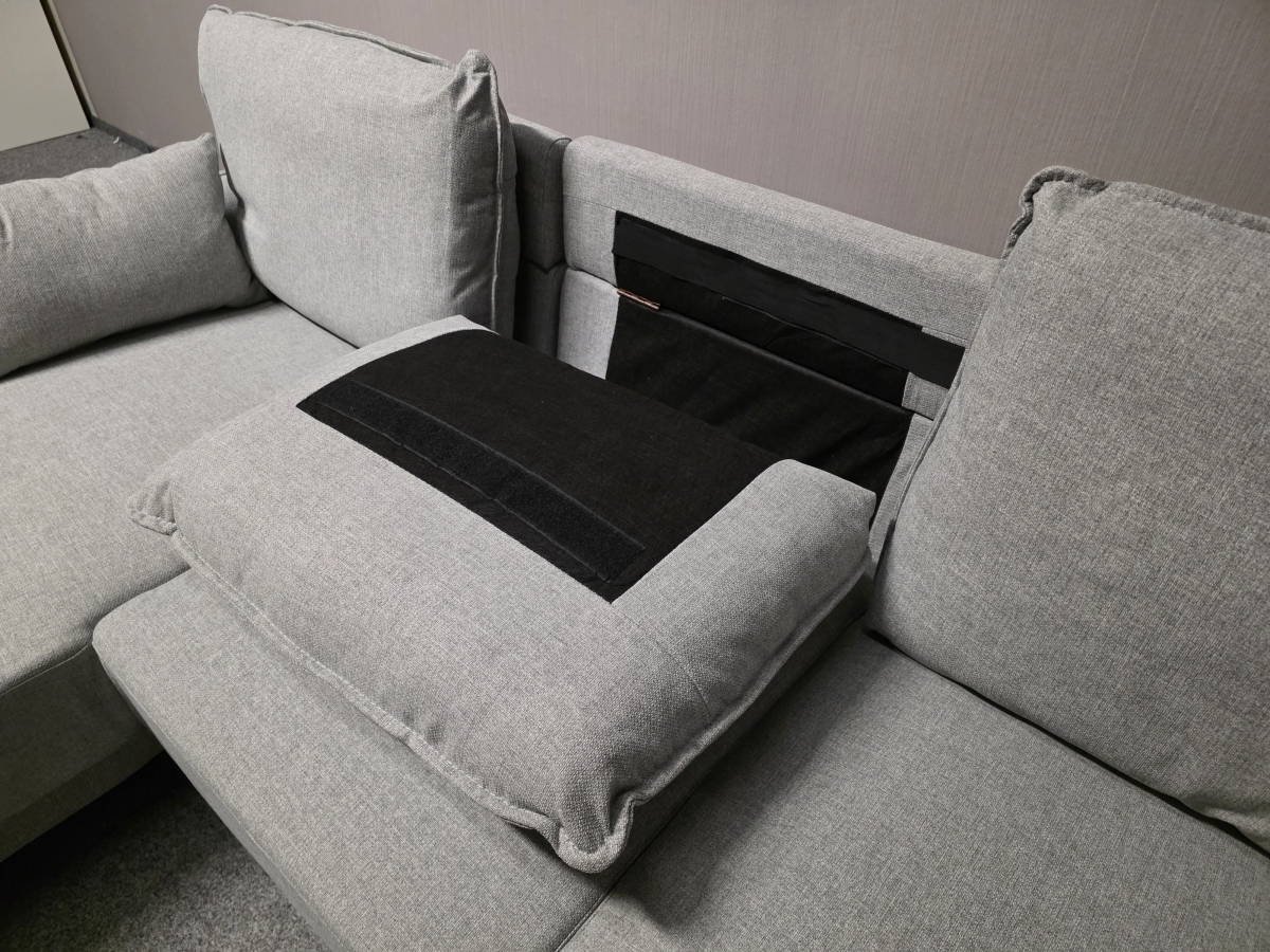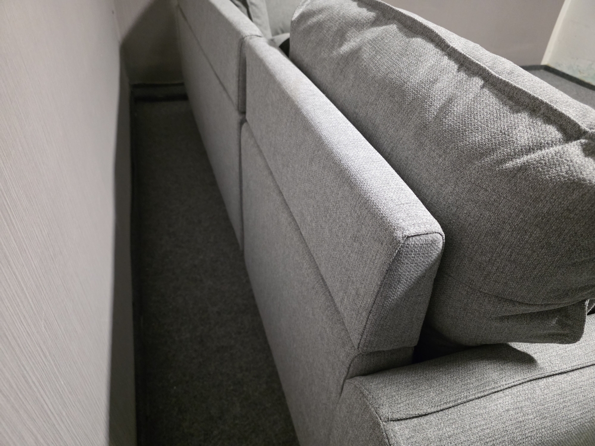 Potah látka, celočalouněné. Nerozkládací, cena s polštáři. Zleva: 153x228 cm, výška 73-86 cm, výška sedáku: 40 cm, hloubka sedáku: 58-74 cm.