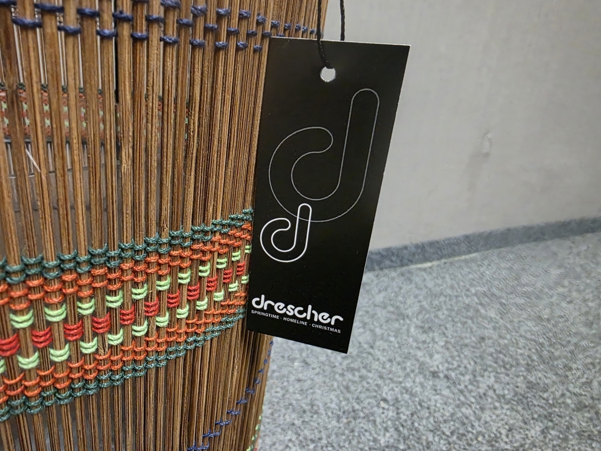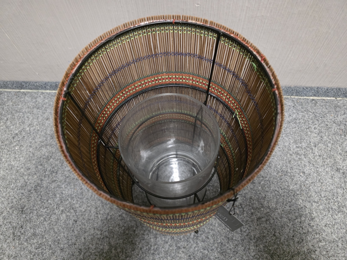 Materiál kov, ratan, sklo. Značka DRESCHER. K dispozici více kusů. Průměr: 24 cm, výška 44 cm. 150P
