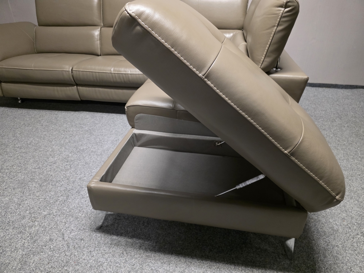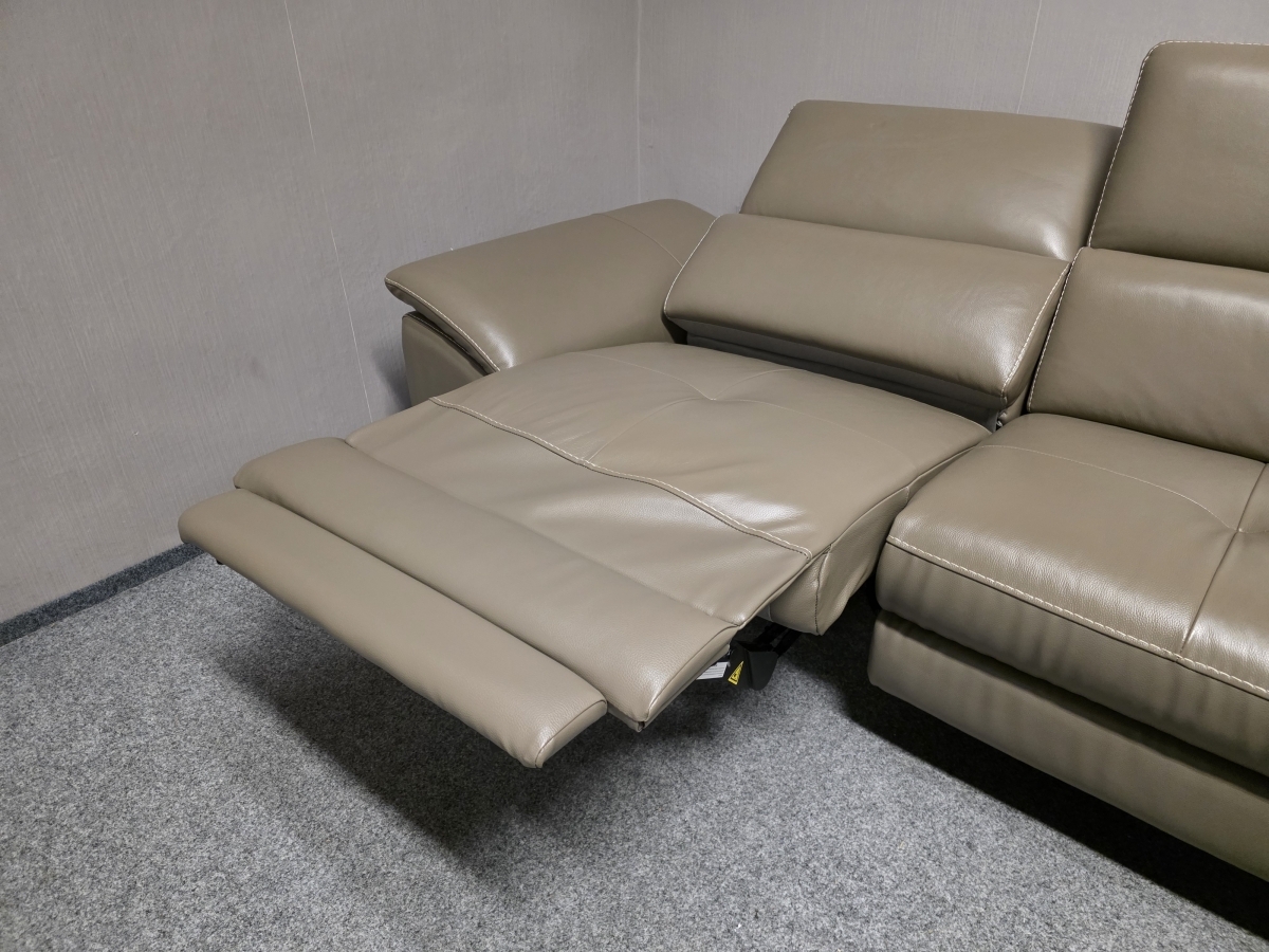 Potah kůže, koženka, celočalouněné. Značka UNO. Úložný prostor, jedna část elektricky polohovací, polohovací opěrky hlavy a rukou. USB přípojka. Zprava: 222x283 cm, výška 79-98 cm, výška sedáku: 47 cm, hloubka sedáku: 55 cm.