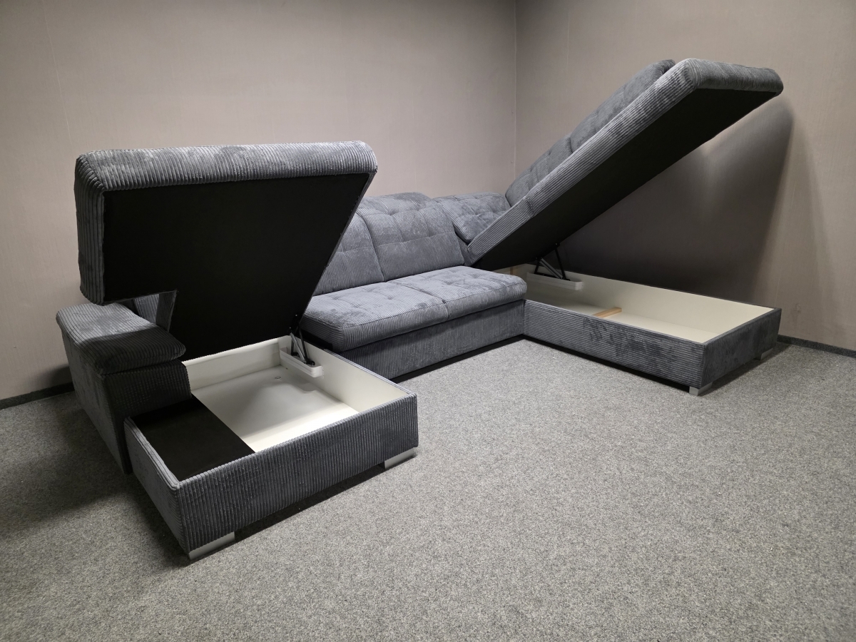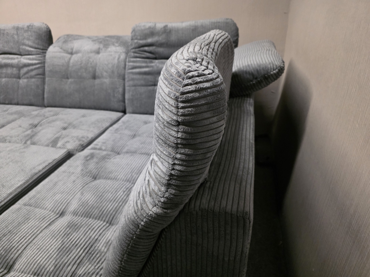 Nová rozkládací sedačka NIXON U šedý manšestr