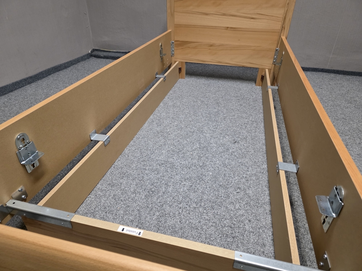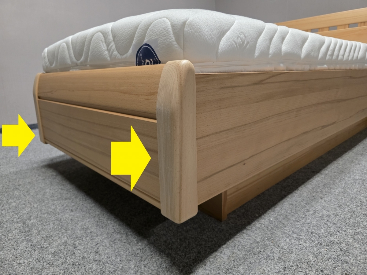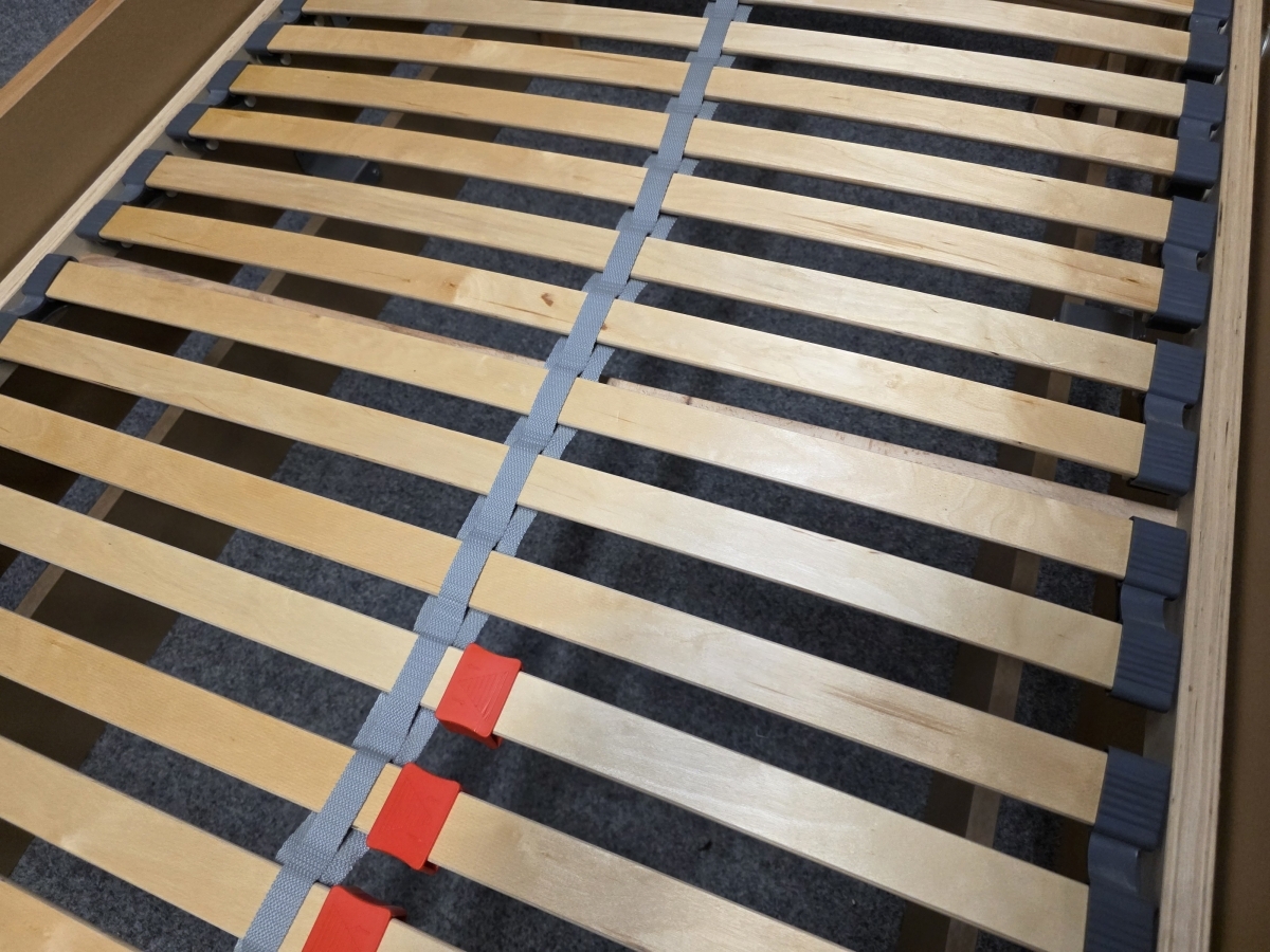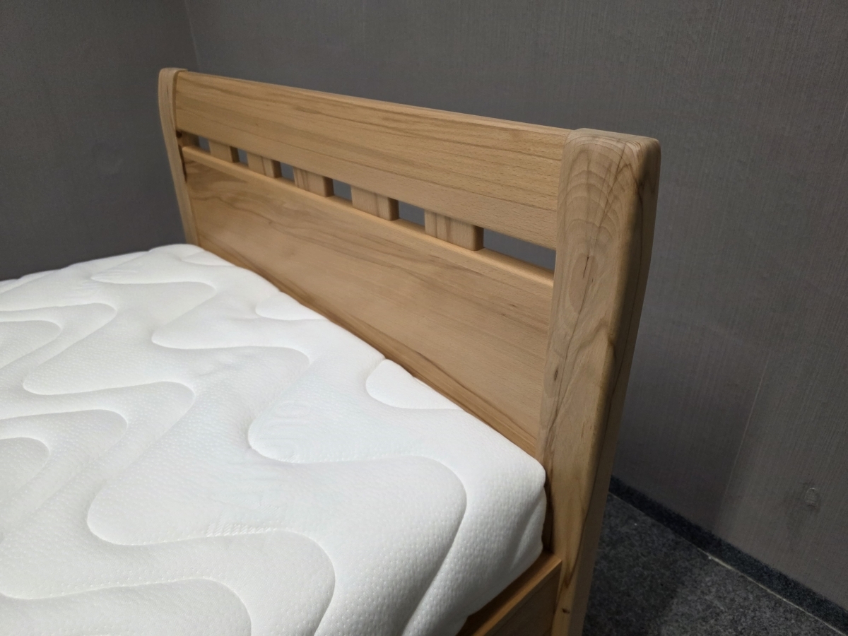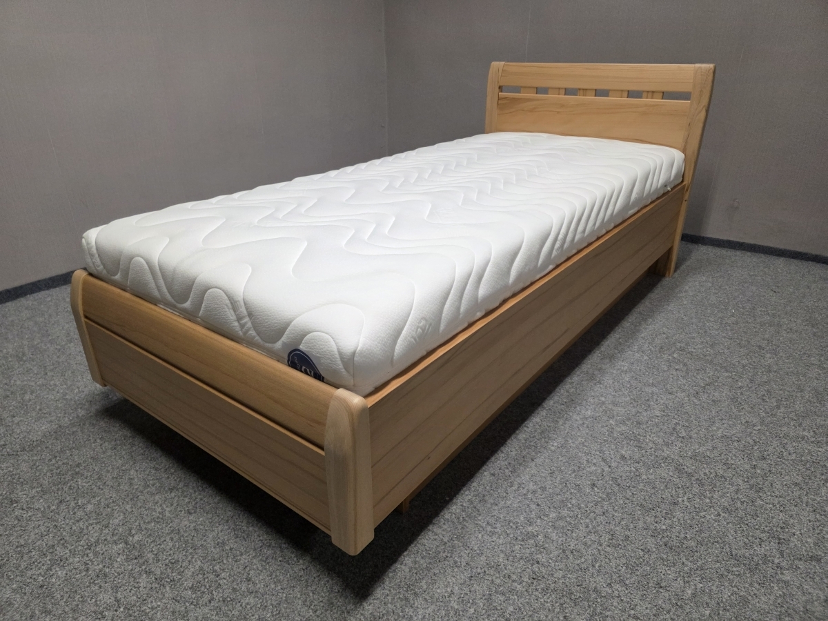 II. jakost (oděrky viz foto). Materiál masiv buk, lamino. Lamelový rošt s možností nastavení tuhosti. Taštičková matrace ARTONE 20 cm tloušťka. Cena za komplet. Lůžko: 90x200 cm, délka 210 cm, šířka 99 cm, výška čela: 87 cm, výška boků: 42 cm, výška lůžka nastavitelná: 50-67 cm. 1/200,90,40/65