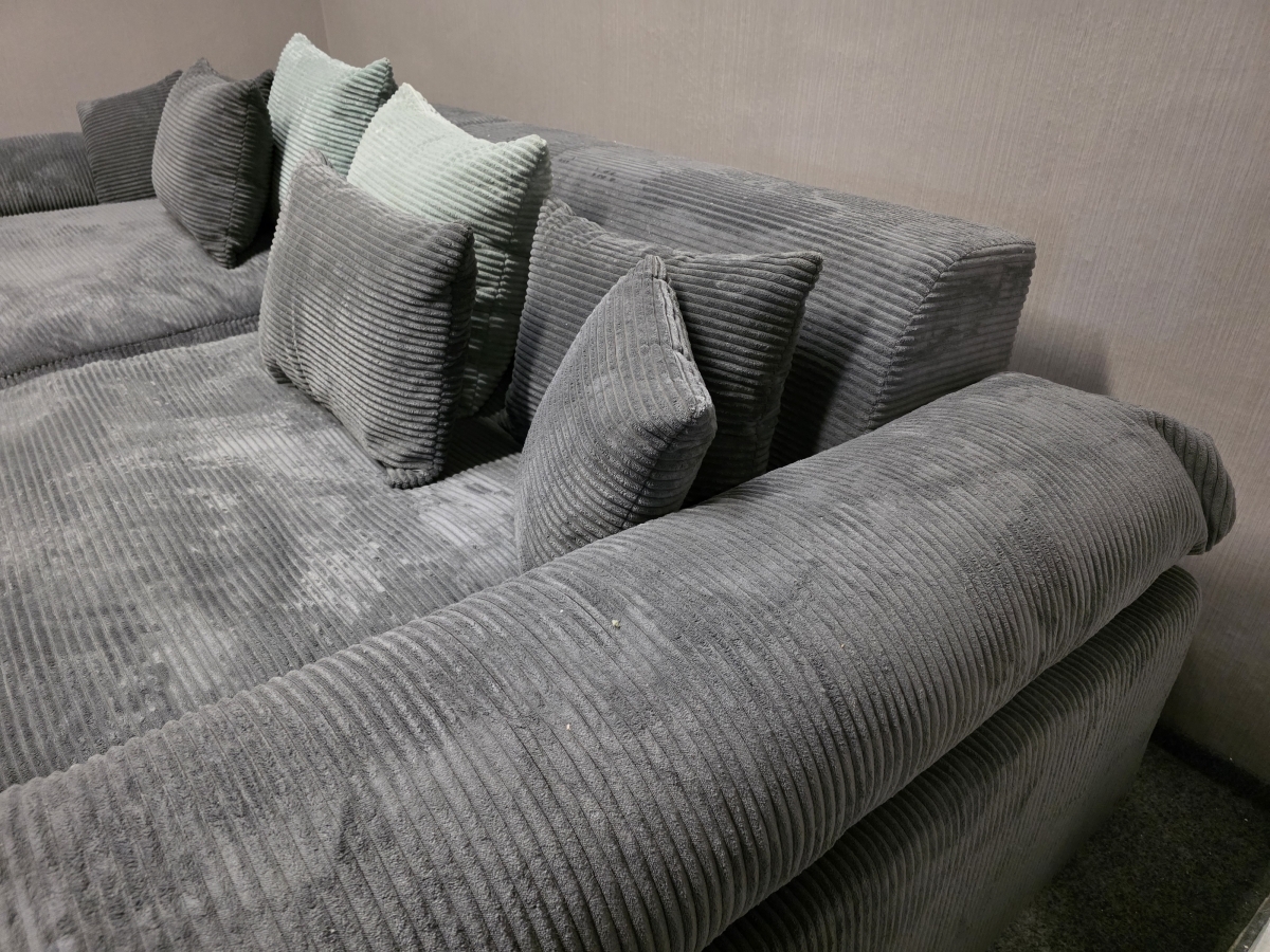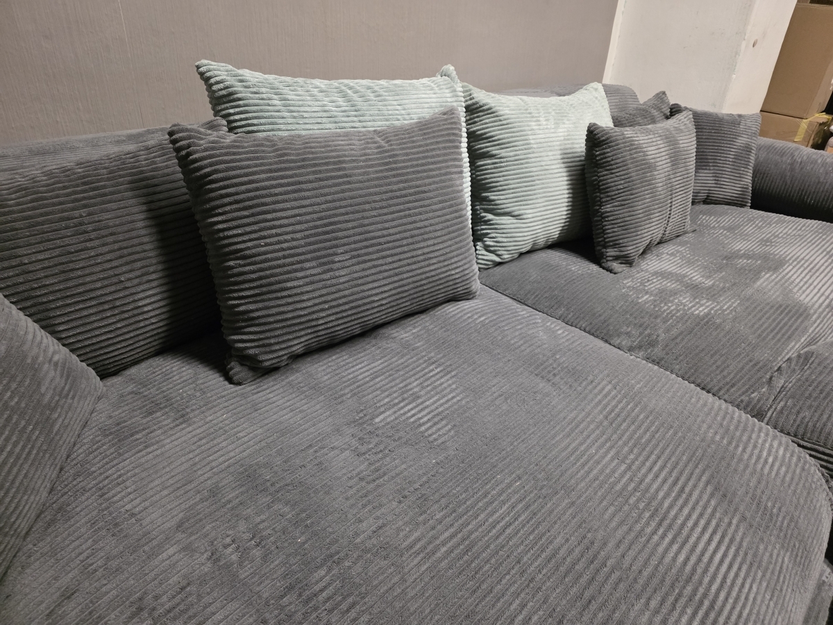 Nová válecí sedačka manšestr LIANEA šedomentolová