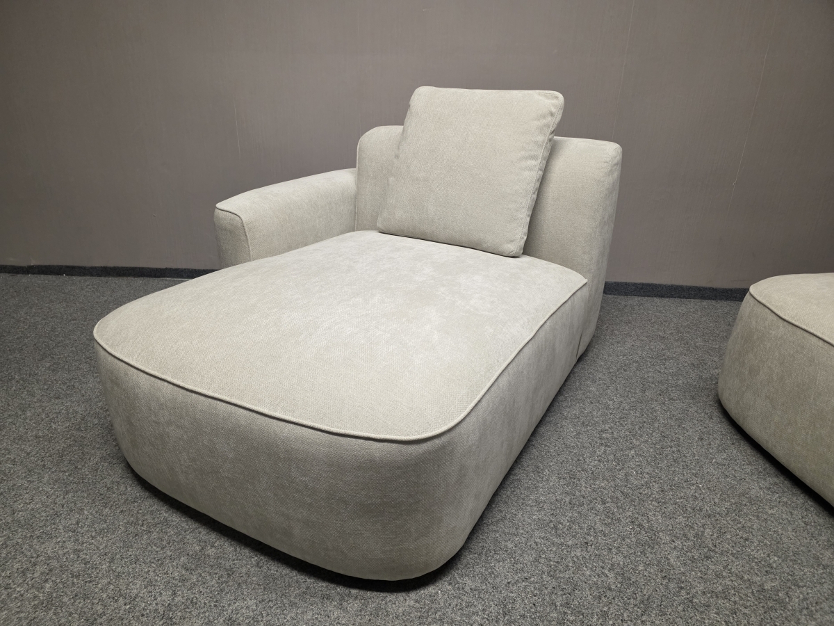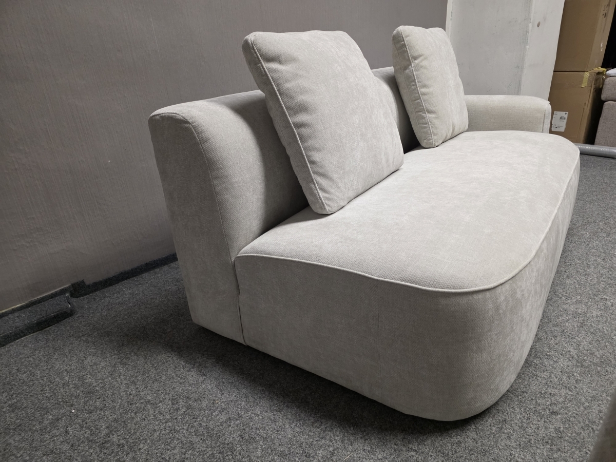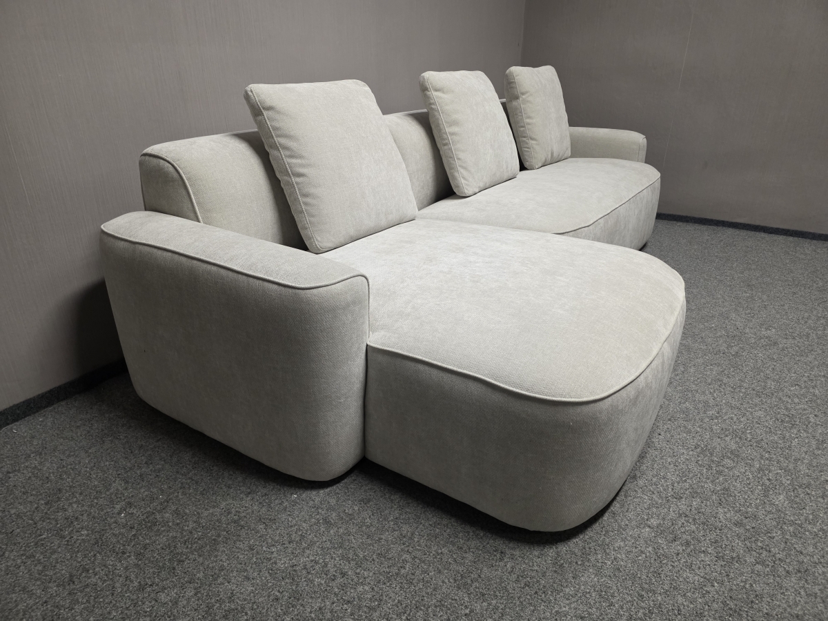 Potah látka 100% polyester, celočalouněné. Nerozkládací, lze postavit samostatně. Cena s polštáři. Zleva: 140x295 cm, výška 73 a 92 cm, výška sedáku: 44 cm, hloubka sedáku: 50-68 cm. Levý gauč: 112x140 cm. Pravý gauč: 100x183 cm.
