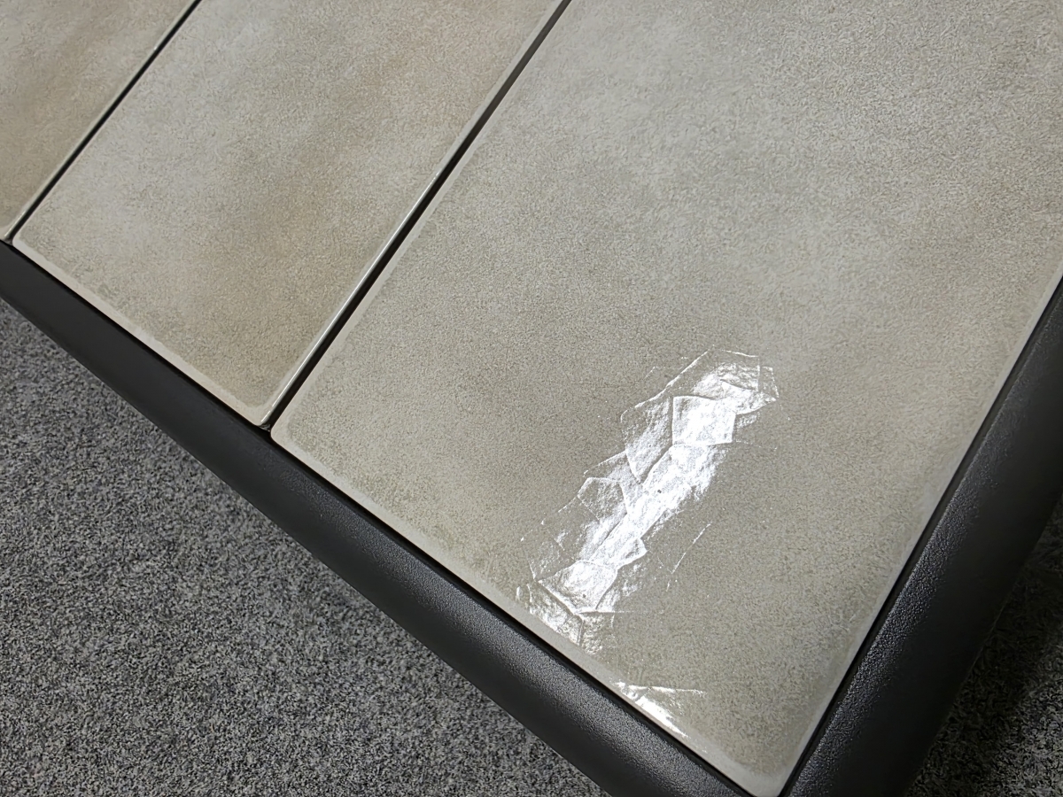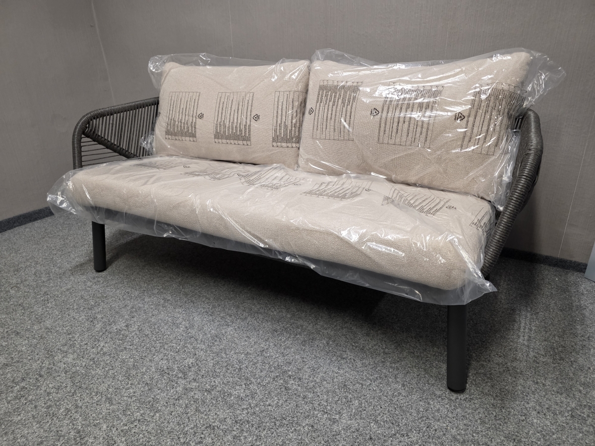 II. jakost (předělávaná noha u gauče). Materiál hliník lakovaný, potah polyester. Kachličky na stolku. Značka KHG. Cena dohromady. Gauč: délka 167 cm, hloubka 80 cm, výška 70 a 82 cm, výška sedáku: 45 cm, hloubka sedáku: 50 cm, délka sedáku: 152 cm. Křeslo: šířka 82 cm. Stůl: 65x127 cm, výška 32 cm. 170,80,120/80