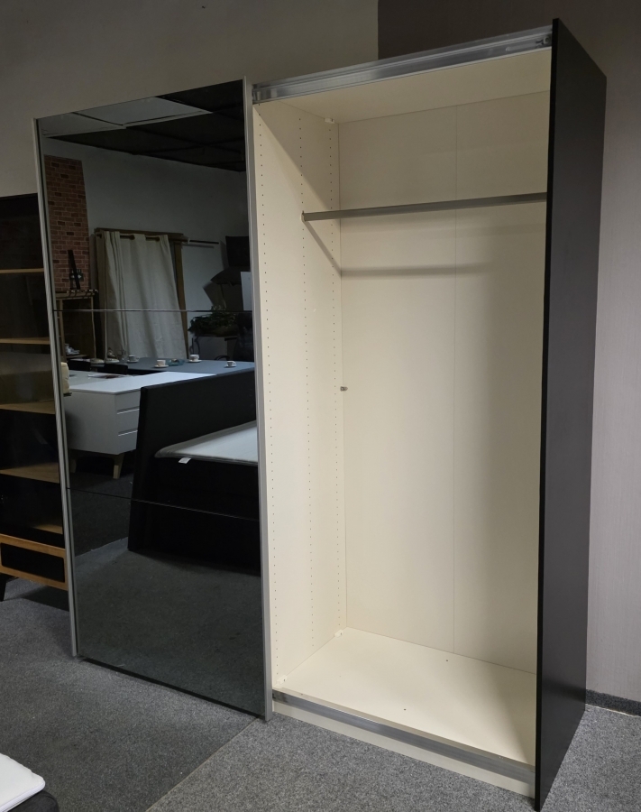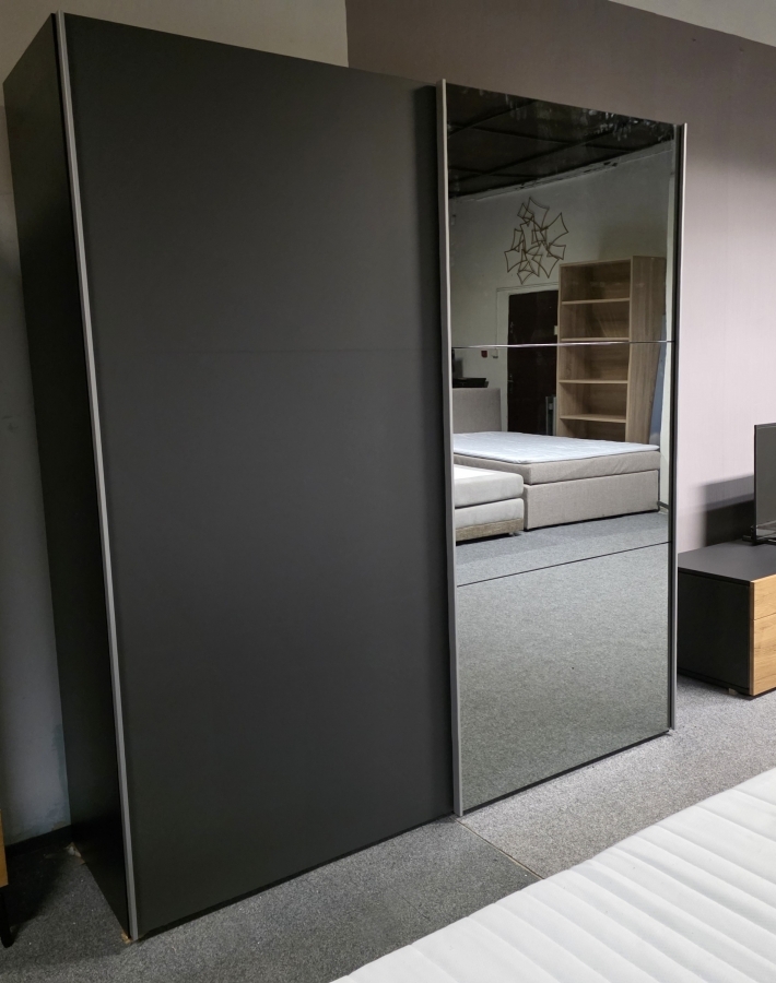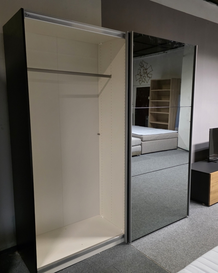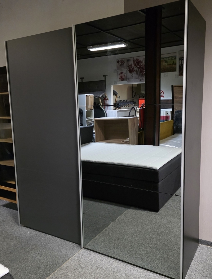 Nová zrcadlová zašupovací skříň 2 dveře šedočerná