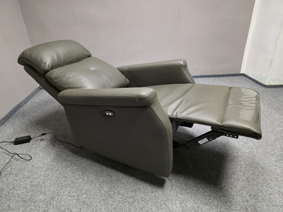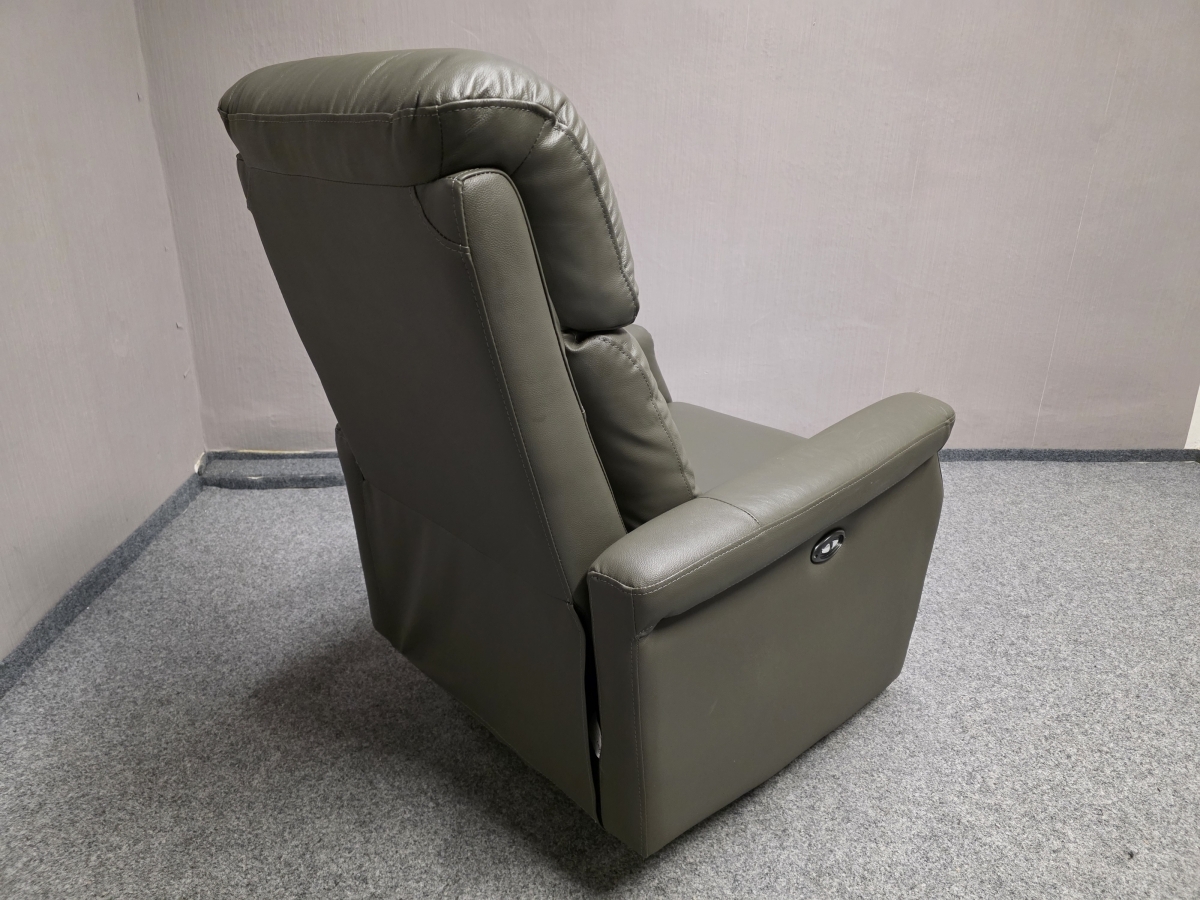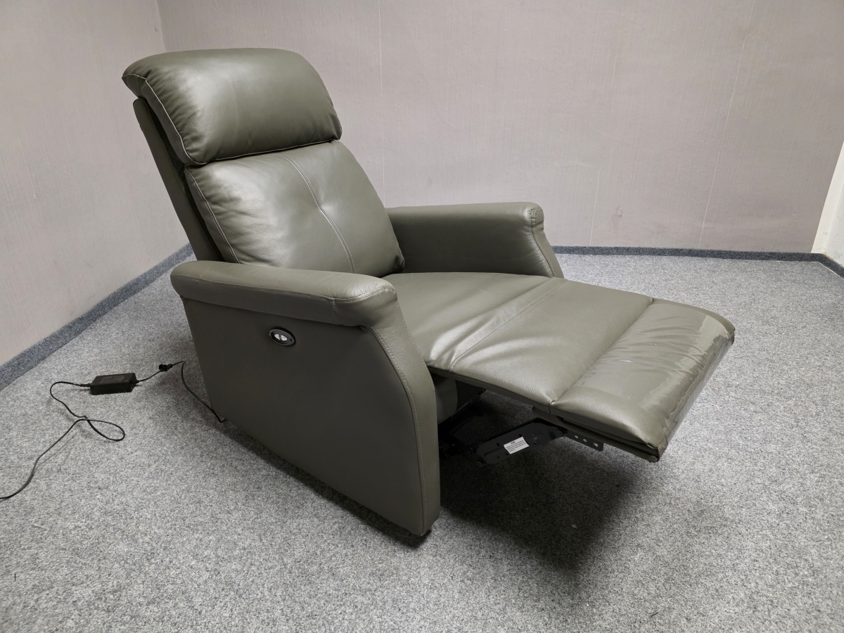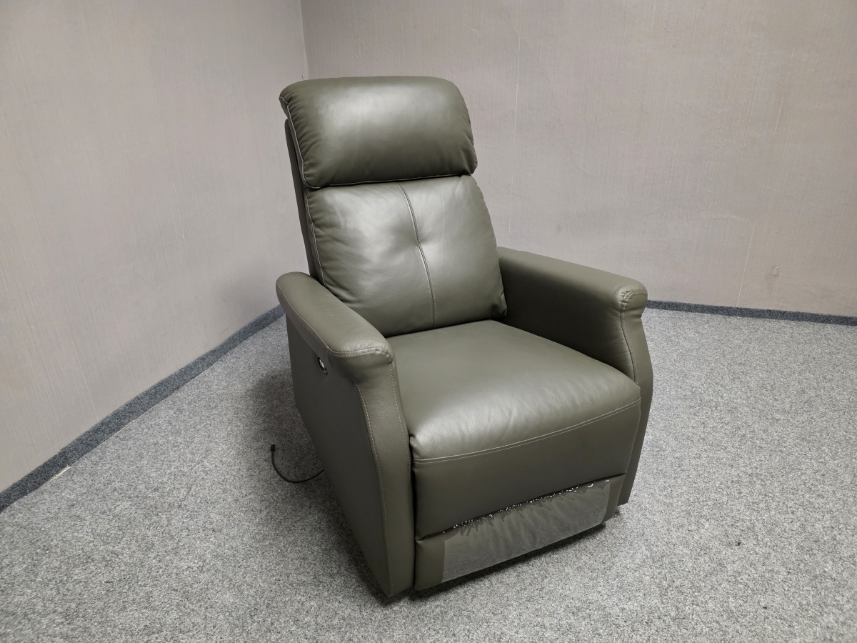Nové kožené elektricky polohovací křeslo šedozelené