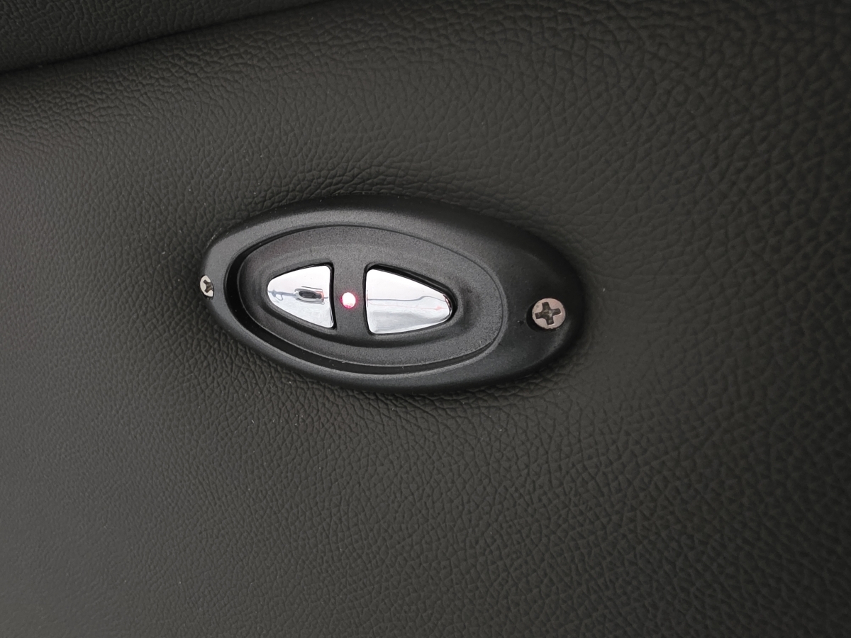 Potah kůže, koženka. (vystavený kus). Elektricky polohovací. Šířka 78 cm, hloubka 85 cm, výška 104 cm, výška sedáku: 48 cm. 1/80,90,70/55
