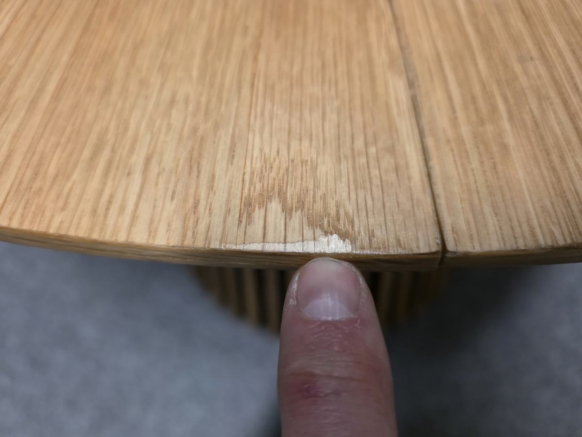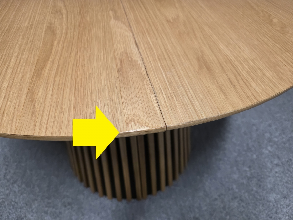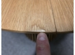II. jakost (drobná oděrka viz foto). Materiál: Masiv dub, dýha. Rozkládací. Průměr desky: 100 cm + 40 cm, výška 75 cm. 2/105,105,60/55