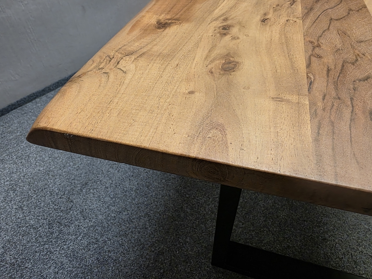 II. jakost (vystavený kus). Materiál: masiv mango lakované, nohy kov práškově lakovaný. Výrobce MASSIV DIREKT. 92x160 cm, výška 76 cm. 1/165,95,20/55
