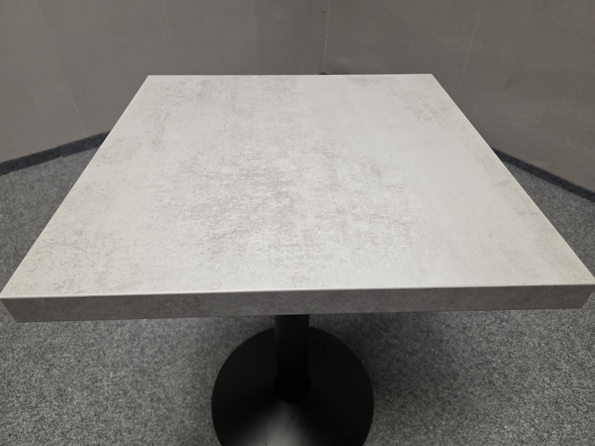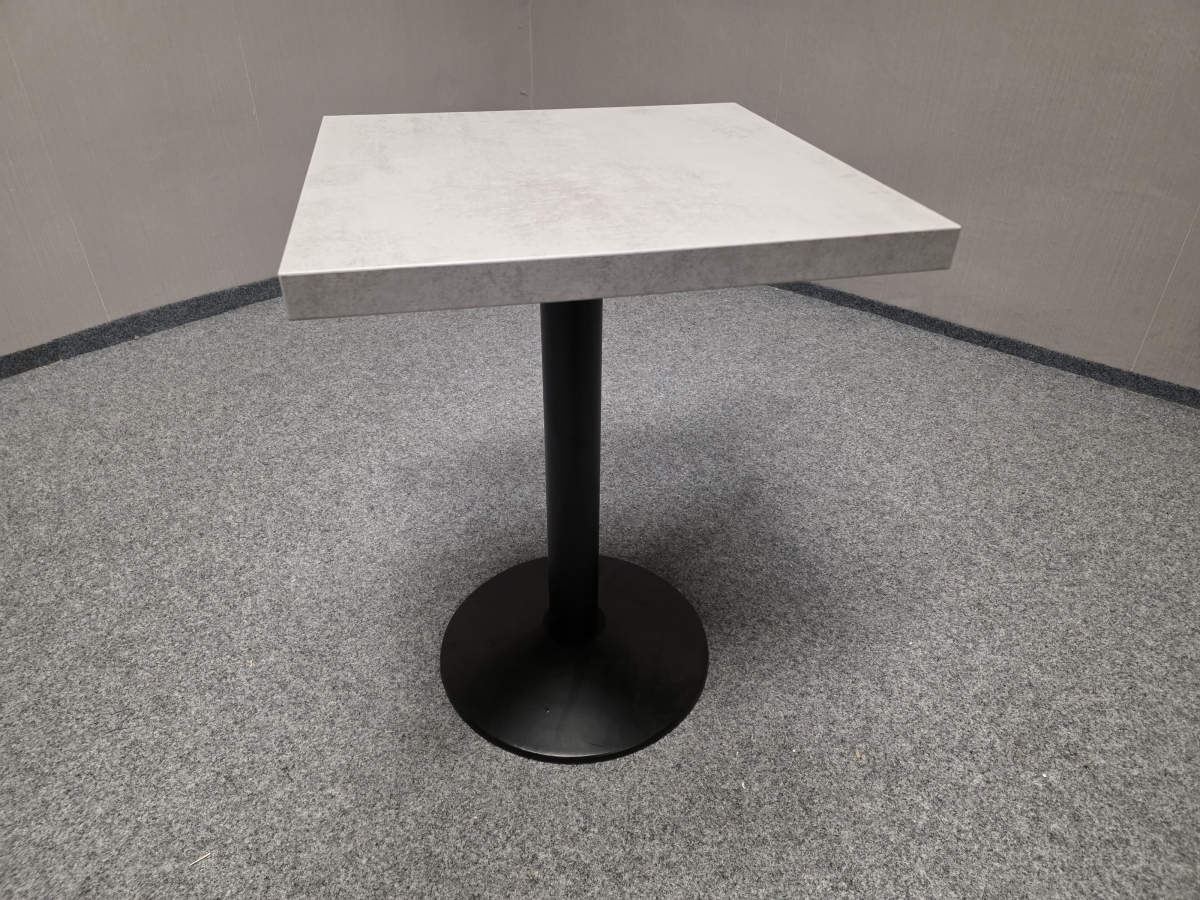 Materiál: deska silné 39 mm odolné lamino, noha kov práškově lakovaný. K dispozici 7 kusů. 55x56 cm, výška 77 cm. 300P