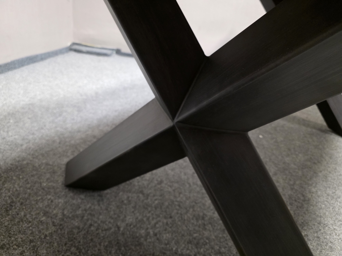 Na bocích tuplovaná 55 mm silná deska lakovaná, nohy masivní kov. Značka GUTMANN FACTORY. 100x200 cm, výška 79 cm.