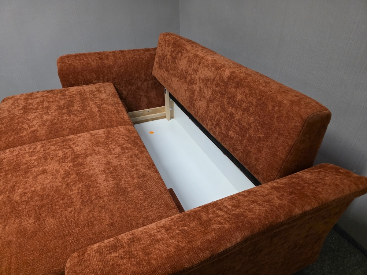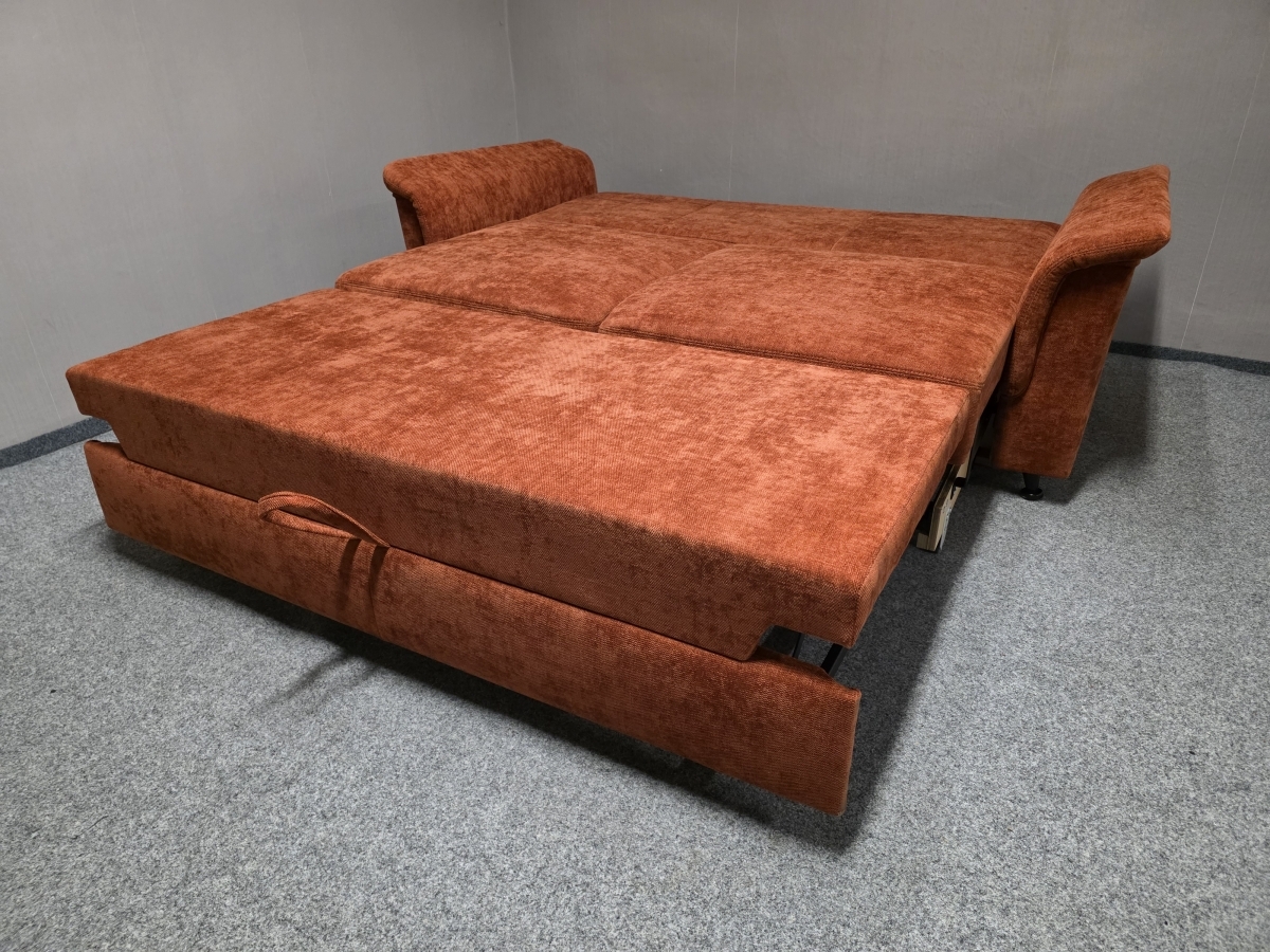 Potah látka, celočalouněné. Rozkládací, úložný prostor. Délka 204 cm, hloubka 98 cm, výška 83-93 cm, lůžko: 160x204 cm, výška sedáku: 50 cm, hloubka sedáku: 60-75 cm.