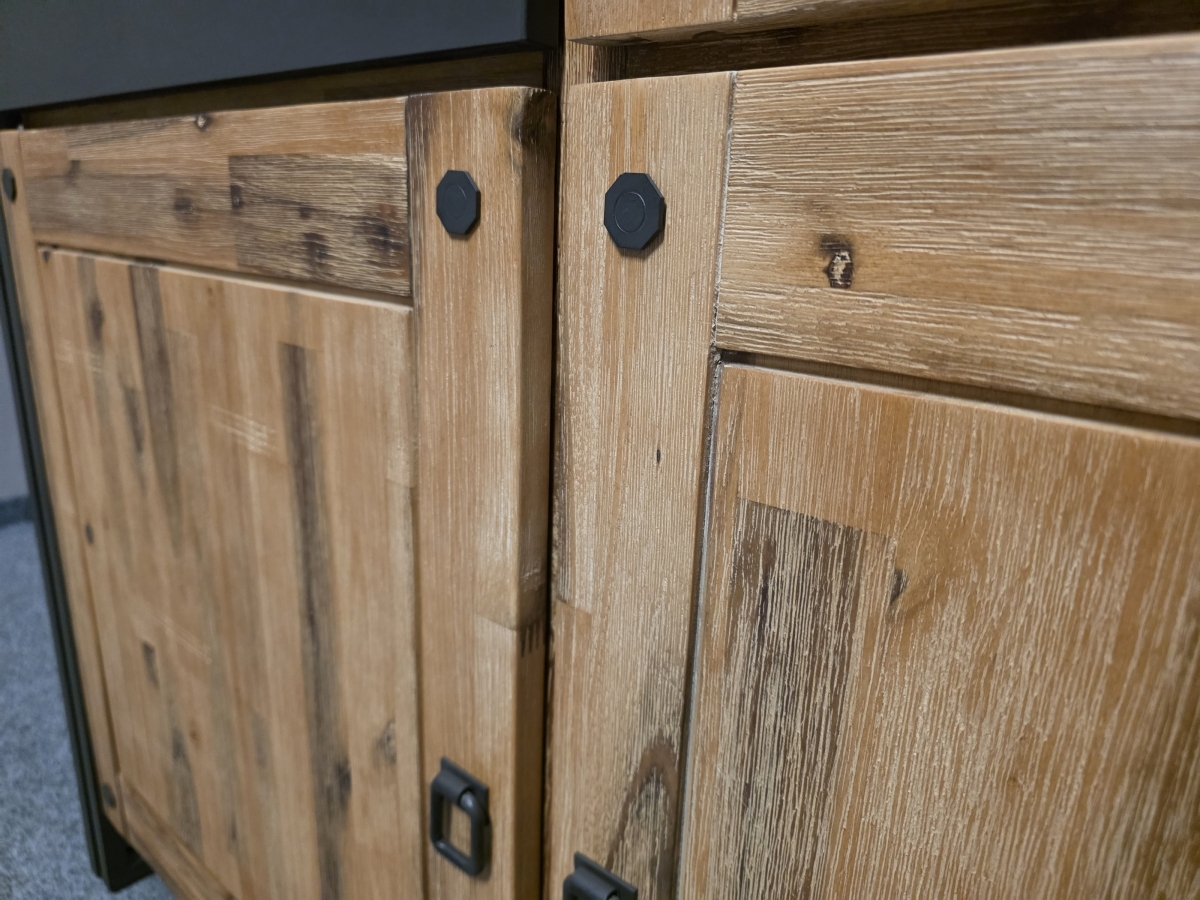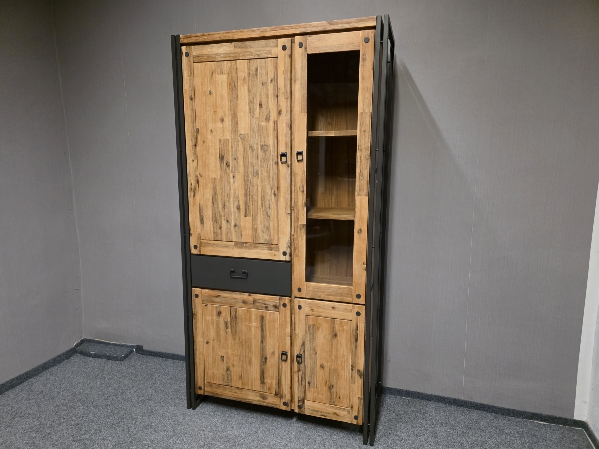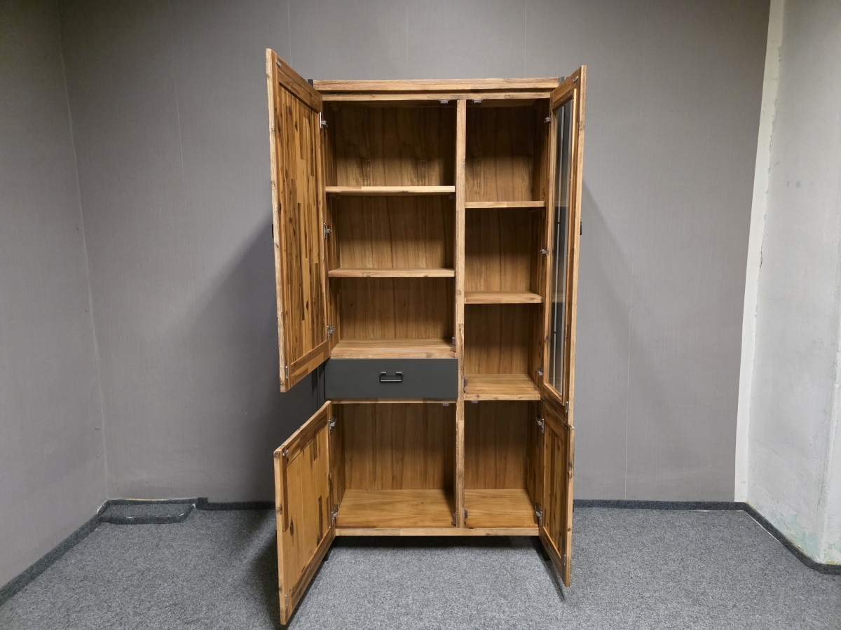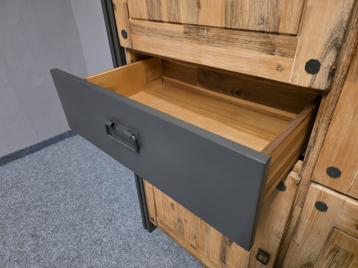 Materiál masiv akát, kov. Dvířka a šuplíky s tlumením zavírání. Šířka 102,5 cm, hloubka 40 cm, výška 197 cm.