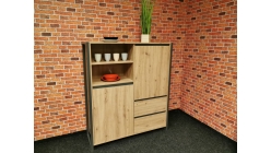 Nové (vystavený kus). Materiál masiv akát, nohy kov. 4 dvířka. Šířka 80cm, hloubka 39cm, výška 140cm. 1/65